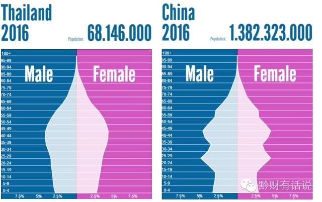 2016年中国和1995年日本的年龄结构对比图